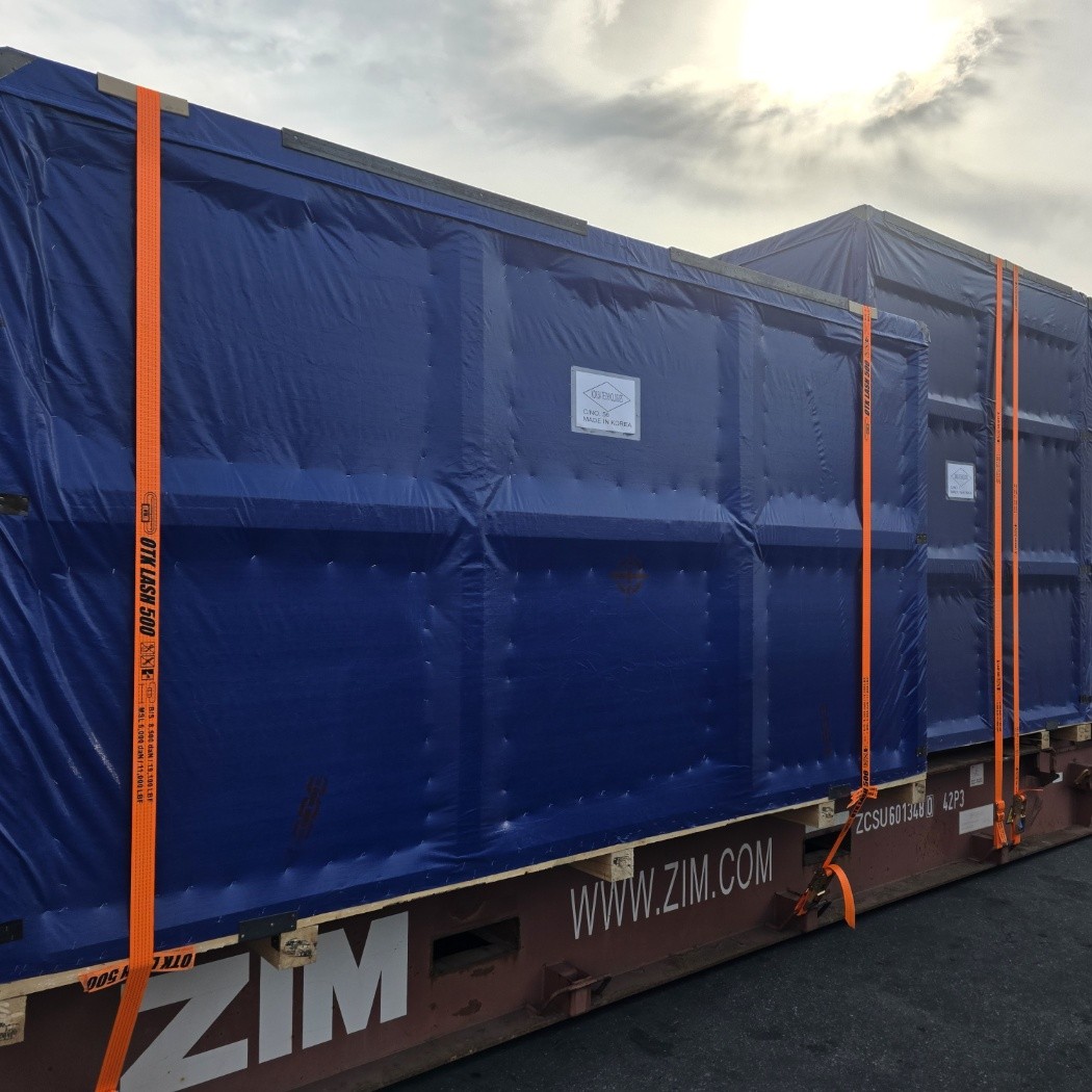 대형 장비를 이용한 FR 컨테이너 작업도